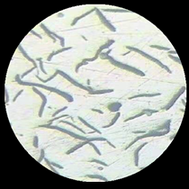 圖片為100倍光學(xué)顯微鏡下灰鐵試棒和球鐵試棒的石墨形態(tài):